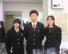 アドバイスがあり、研修生からも熱心な質問があった。 2.旅のしおりが配布された。 3.引率者の武藤恵美先生から研修中の留意事項が説明された。 4.研修旅行用のジャケットが配布された。 ジャケットの料金納入は、3月3日(土)迄となっています。 お釣りのないよう、早めに納めていただきますようご協力 下さい。製品代、ワッペン代、消費税の合計は,10,290円 となります。 5.班編成が行われ、5班の班長がそれぞれ決定した。 6.班毎に記念撮影が行われた。 開始時間13:30 終了時間15:10 2006年度ブロック大学語学研修生班編成 ◎印は班長 ※ 各写真はクリックで大きくなります。 研修生 第1班 ◎斉藤隆馬、奥村 早紀子、越智みずき 坂 汐織里、平田 彩乃、藤田 舞 研修生 第2班 池田 聡人、◎岡部 彩華、須藤 杏 松木 美緒、矢野 愛里 (池田 聡人は風邪の為、欠席) 研修生 第2班 池田 聡人(2月26日登校、撮影) 研修生 第3班 小林 瑶、小林 理恵、中村みのり 仁木英理菜、◎渡邊聡太朗、小笠愛里沙 木下 玲奈 研修生 第4班 今井 智瑛、舟橋 江梨伽、北澤孝太郎 鈴木 祐希、齋藤 亜衣、◎高木 理沙 研修生 第5班 裏 恵子、山下 留奈、◎渡辺 亜美 戸田 智美、バトバヤル・バダラハ、斉藤 愛菜 引率者 由岡 芳隆、武藤 恵美(メグミ) さて、第3の男は? 1日目(2007.3.15(木)) 18 Sunday 19 Classes begin 8:00-2:00pm EA bldg 3 25 Sunday 26 8:00 - 2:00 p.m. Classes 1 Sunday 2 8:00 - 2:00 p.m. Classes