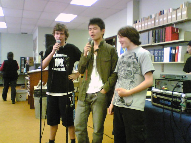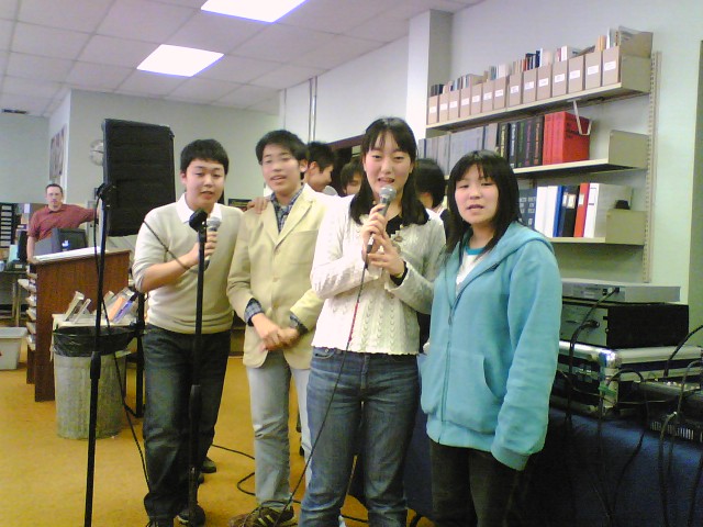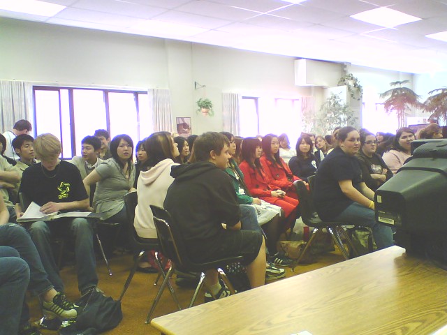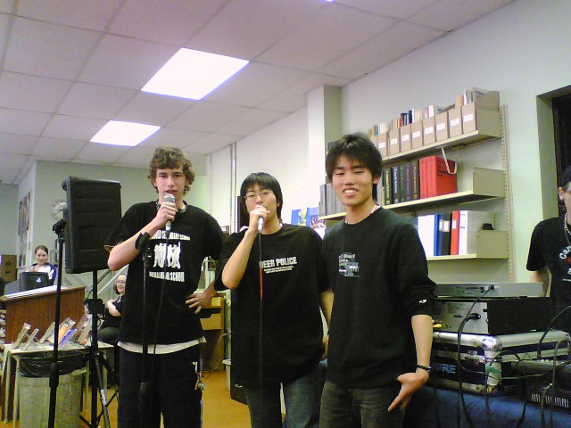 Lightstone 訪問、午後からはソロルド高校主催のカラオケパーティに招か れました。 今回がソロルド高校への最後の訪問となります。 朝食会参加と学長訪問は、私と Meg 先生とでさせていただきました。 Dr. Lightstone 訪問は、20分間という短い時間でしたが、名刺交換、贈り 物交換、家族や趣味、カナダ滞在中の訪問地、学長の出身地や日本近況 などに話題が集中し、13階の学長室からの素晴らしい景観を眺めながら、 和やかなうちに学長室を後にしました。 ナイアガラ地区学校関係者 朝食会 朝食会で同席した父兄 ブロック大学学長室 受付 学長室からオンタリオ湖を 一望する。 Dr. Jack Lightstone ← 学長のページです。 クリックで飛びます。 カラオケが始まりました。 池田聡人、斉藤隆馬 カラオケ出演者に聞きほれる。 ソロルド生は、迫力がある。 カラオケの出番を待つ 聴衆席 聴衆席 元気な Alex Kuiper & Chris Rukus Chris Costiff ソロルドで1番の元気者 ソロルド高校新聞の写真編集 担当 Wes Gregory Reading Assistant Teacher Christyn Colbow 将来、日本で英語を教えたい と言ってました。 合唱、右端は舟橋江梨伽 Chris Costiff Alex Kuiper Alex Kuiper ほか2人 Costiff 兄弟にはさまれた バトバヤル 左に斉藤亜衣、右に舟橋江梨伽 今日のカラオケ・オペレータ Dereck Foster 副校長、Mr. Nigel Evans プロ歌手みたい すごい迫力でした。 戸田智美、岡部彩華 後方に北澤孝太郎、 渡邊聡太郎 ソロルド高校のT-Shirt ディザイナー Rebecca MacMillan 右から Chris Rukus、 Cody Costiff 歌と踊り Costiff 兄弟を岡部彩華と 池田聡人がはさむ なかなか上手い 左 Cody Costiff 右 Chris Rukus Don Lockhart 先生と 教頭の Nigel Evans 先生 チアガールも加わった 帰りの市バスは、北海生で 貸切? 4度目のソロルド高校訪問でした。カラオケ・ピザパーティーは、 サヨナラ・パーティーとなって、ちょっぴり寂しくなりましたが、 約2時間半、楽しい交流ができたのではないでしょうか。 中でも、北海生の校歌斉唱には、ソロルド生たちも感動したよ うでした。日本一の校歌は、やはりカナダでも受けました。 明日は、放課後、再びナイアガラの滝へ向かい、ショッピング など楽しむことになりました。 ※ カラオケパーティーでは、北海生の知っている歌が少なく 実際に歌った生徒は、ソロルド生がほとんどでした。 このパーティーで生徒が歌う歌の準備が、何らかの形で 出来ていることが望ましいと思いました。 PR