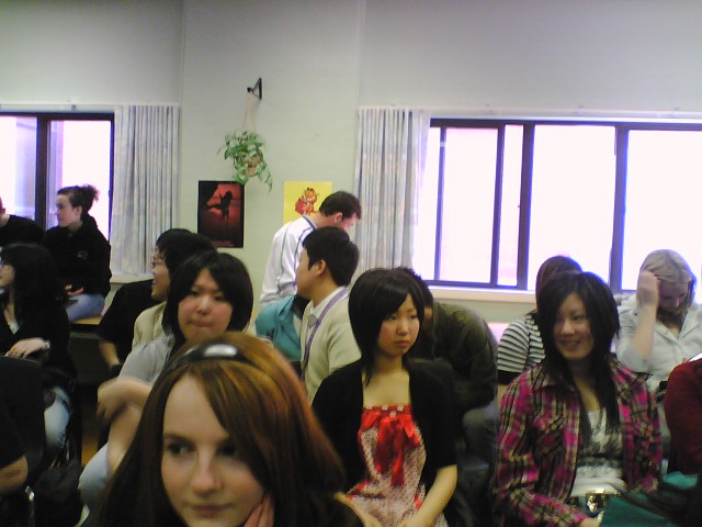 今日の授業の全てが、各授業に対する評価とホーム・ステイに対する評価と について、生徒一人一人が感じたままをアンケート形式で答える内容となりま した。 クラス2の方は、明日、シャノン先生の授業で、ホーム・ステイに対する 評価について答えることになっています。 放課後は、スクール・バスにて、13:50にブロック大学からダルジー地区に あるボーリング場に向かいました。ここのボーリング場は、5ピン・ボーリング でボールも普通のものと比べかなり小さく、日本には無い形式のものでした。 ボーリングで遊んでいる間、ジャッキーさんの計らいで、岡部彩華と斉藤亜衣 の誕生祝いをしました。 チョコレート・ケーキとバターレイズン・ケーキが用意 され、ケーキに立てたローソクを消して、生徒みんなにケーキが配られました。 ボーリングを大いに楽しんだ後、ポート・ダルジーまで歩き、バスの停留所で 解散となりましたが、ビーチで膝まで湖水に浸かって遊んでから帰宅する者 もありました。 ボーリング場、その1 ピンは5つ、見えますか? ボーリング場、その2 ボーリング場、その3 ボーリング場、その4 ボーリング場、その5 ボーリング場、その6 ボーリング場、その7 誕生日オメデトウ 岡部彩華 ボーリング場、その8 誕生日オメデトウ 斉藤亜衣 ボーリング場、その9 John(ジョン)先生を囲んで ボーリング場の前で ポート・ダルジーの灯台へ 向かうのは? 多分、Meg 先生 ビーチで水遊び お名残惜しい 渡邊聡太朗と藤田舞かな? 明日は、いよいよ授業最終日、その後、評価テストと終了証授与式とサヨナラ・ ランチ・パーティが行われます。 早く帰りたい気持ちと、まだまだカナダにいたい気持ちとどちらが重い? [ 謝 恩 会 ] ブロック大学でお世話になった先生、職員の方々に対し、ささやかながら、 謝恩会を開催しました。 と き 2007.4.2 Mon. ところ タイ料理店 Sahla Thai (Jackie さんの推薦です) 時 間 18:30~20:30 出 席 14名 (教員6名(全員)、職員6名、引率2名(由岡、武藤) タイ料理もなかなか行けて、大変和やかな裡に、予定の2時間が過ぎて しまいました。 今年の6月に Dr. Irons が、ブロック大学副学長の Ms. Kim Meade とご一緒に札幌へお越しになるそうです。 また、明日、 Ms. Kim Meade が、お別れ昼食会にお出でになるそうです。 席上で、私から以下のような挨拶をさせていただきました。 Good Evening Ladies and Gentlemen, Thank you very much for coming to this party. We came to Brock, St. Catharines, Ontario in Canada, on the 15th of March. Time flies like an arrow, I mean our days together have almost come to an end. Thanks to you, we have studied lots of important things, such as Canadian culture, history and grand nature. Our aims of this trip are almost completed. By the way, I want to tell my private story to you. I went to Lethbridge Collegiate Institute, LCI, in Alberta, in September 2004, taking 30 students of Hokkai and Sapporo Senior High Schools. We arrived at Vancouver Airport, Calgary and then finally Lethbridge by bus. I adjusted my watch by mistake in Vancouver but I forgot to do so in Calgary. I mean my watch was one hour ahead in Lethbridge. On the first morning, I got up at six sharp by my watch and knocked the door of my host, Mr. Max Zaugg, Vice Principal of LCI. Knock, Knock, Knock, “ Max, time to get up.” He got up soon, got out of his room and said to me, “Good Morning, Yoshi.” Of course, without any complaint. He drove me to a restaurant in early morning and his school. He started his work in his office as usual. I sat down there for few minutes and went out of his office. I looked up at the clock in the hall and looked at my wrist watch. Oh, my God. I mean I believe this is a real Canadian. Your hospitality reminds me of such an attitude of his. That is, Canada is really great. I’d like to say, “Thank you for your kindness and everything you gave us for these three weeks.” I’ll never forget your kind hospitality. Please come to Sapporo, Hokkaido in Japan someday. We’re waiting for you to come. Thank you. |