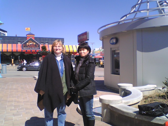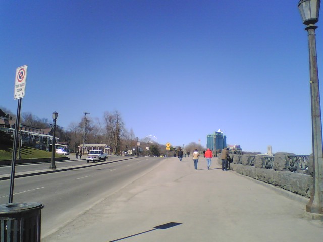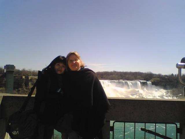 へ向かいました。予定には無かったのですが、生徒たちの希望で実現しました。 今日は、ほとんど無風の快晴で、今回のセントキャサリン滞在中では、最高の 日和でした。 ショッピングの時間もたっぷりあって、生徒たちは、十分楽しんだ ことと思います。 ナイアガラの滝到着 Jackie & Meg ナイアガラ瀑布 未だ氷塊が残る早春の ナイアガラの滝 仲良しの二人 ナイアガラの滝と Skylon Tower など Rainbow Bridge 右側は、USA 見えますでしょうか? 虹です。 ナイアガラ川沿いの遊歩道 空の色を見て下さい。 滝に近いショッピング街 大きな石の球が、水に 押し上げられて回って います。 玉座に座った二人 あれれ、鈴木悠希? あれれ、池田聡人? こんなになっちゃって 斉藤隆馬? 生徒たちは、こんな街が 大好き 店と品物が、余りにも多くて 目移りしちゃった二人 ブロック大学から約20分でナイアガラの滝へ着きました。こんなに美しい 日に恵まれることは、稀なことらしいです。14:10~17:15迄生徒たちは、 気の向くままにショッピングを楽しんだことと思います。 明日は、15:00にセントキャサリンズ市長訪問。 次いで、18:15~ Pen Center (ショッピングセンター)の映画館で映画鑑賞をすることになっていま す。映画終了時間は、21時頃を予定しています。