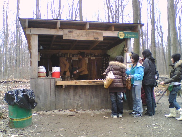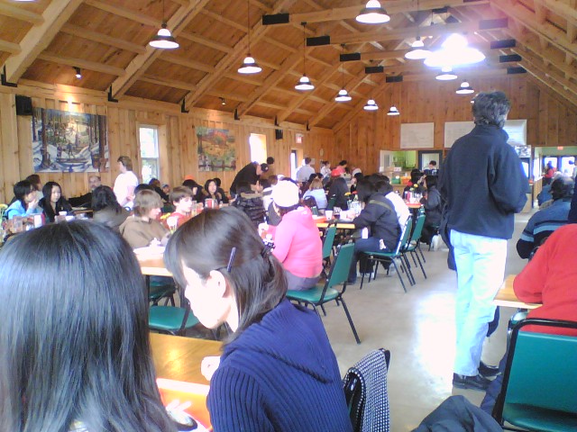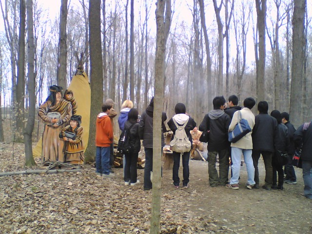 今日は、予定通りマーケット・スクエァーとシュガー・ブッシュ(メイ プル・シロップの森)へ行って、ショッピングや見学をして楽しみま した。 マーケット・スクエァーの 入り口 マーケット・スクエァーの 賑わい この中の商品は、消費税無しで 買えます。 奥から入り口方向へ撮影 特にハンバーガーが安くて美味しいと 好評でした。 ここがシュガーブッシュの 農園。 売店などが並んで います。 中のレストラン パンケーキとメイプル・シロップ をみんなでいただきました。 食事中 食事中 左が、ジャッキーさんの ご主人、Mr. Angi-Dobos 左は、同郷ハンガリーの 友人 シュガーブッシュへ向かう ワゴン車の中 シュガーブッシュの入り口 入り口で記念写真 ワゴン車をトラクターが 引く 通行案内 インディアン・テントの前で 説明を聞く テント前の焚き木 テント前で原住民に なったつもり 池田聡人、北澤孝太郎 1400年代のメイプル・ シロップの製法 カエデの木に穴をあけて シロップを採る 俺たちも穴をあけてみるか 木を丸く切って、真ん中に 焼きごてで刻印を入れる 俺らも慣れたな メイプル・シロップの 飴が売ってる 1個1ドル 何故か、バイオリンの独奏 私たちだって負けない わよー ワシもやってみるか 可愛い動物たちを可愛がって あげるところ 動物に触れて 可愛がります 可愛い動物ばかり ヤギ、仔馬、ヒツジ、ニワトリ、 アヒルなど 最後は、直売店でメイプル・シロップなどのお土産を沢山買いました。 値段も手ごろで良質な商品が多かったようです。 ここでは、TCもクレ ジットカードも使えました。 レジでの商品の支払いに手間取り、バスの出発が遅れ、ガーデン・ パーク・ストリートへの到着時間が予定を大幅に過ぎてしまいました。 14:20(予定13:00) 明日の日曜日は、それぞれのホームステイで過ごします。 2日(月曜日)は、放課後にボーリングをする予定です。 私たち引率者 は、ブロック大学関係者に対する謝恩会を開催します。
